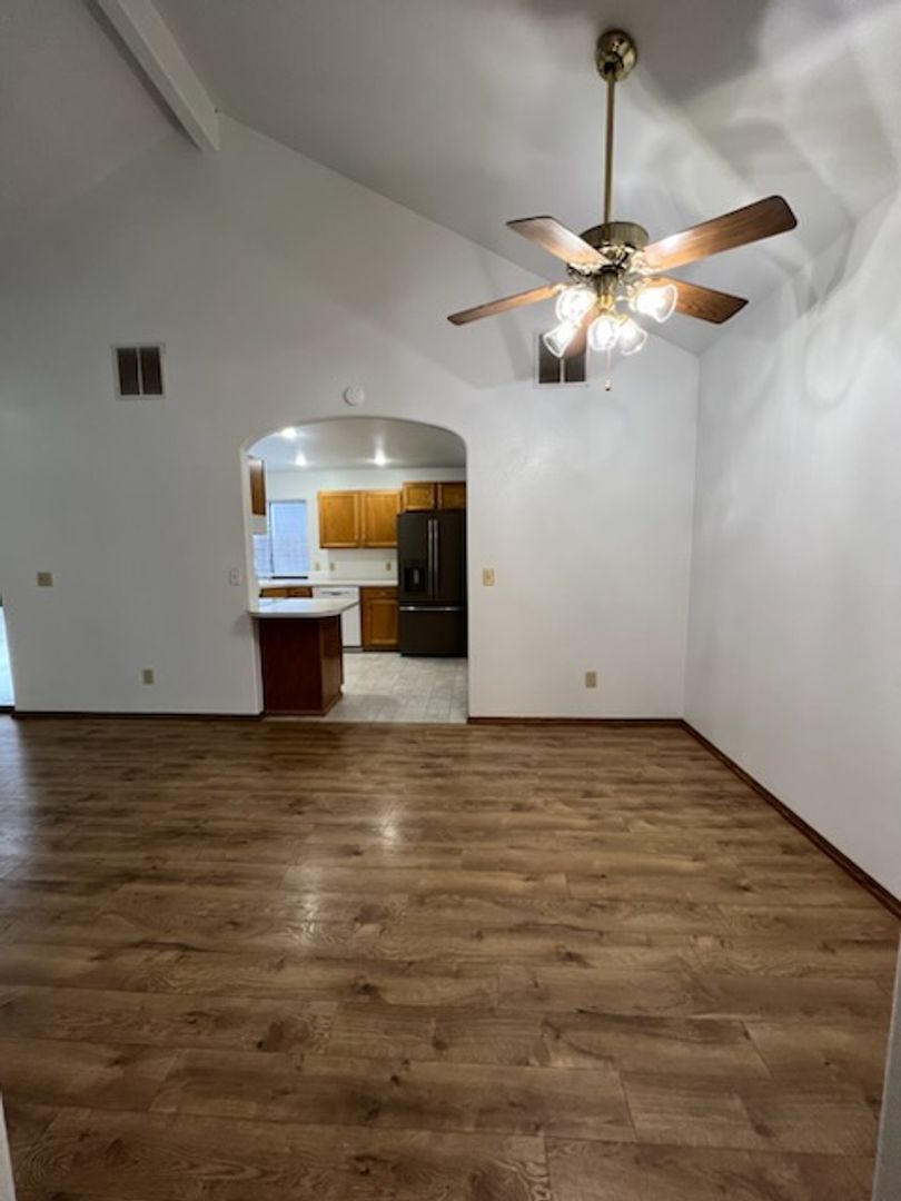 This home has a great flow throughout! Vaulted ceilings in the living/dining room, central a/c, dishwasher and FULL SIZE washer & dryer included. Master bedroom has two separate closets and its own bathroom. The back yard is fully fenced. Double car garage attached. Located on a quiet cul-de-sac!