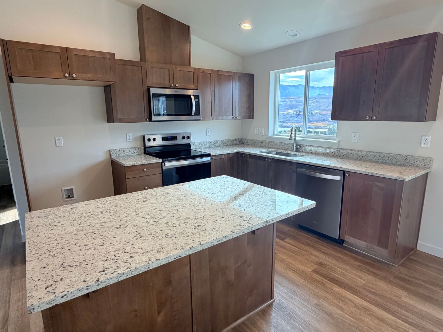 Welcome to your dream home in East Wenatchee! This BRAND NEW construction offers 3 spacious bedrooms and 2 full bathrooms. The primary bedroom comes with an en-suite bathroom for your convenience. The kitchen is a chef's delight, equipped with stainless steel appliances and granite countertops. The soft close cabinets add a touch of luxury and sophistication. The double car garage is not just spacious but also heated, a feature you'll appreciate in the colder months. Step outside onto the deck and be greeted by breathtaking mountain and valley views. The large backyard is perfect for outdoor activities or simply enjoying the view. Pets are negotiable at this home, with a pet policy and a reasonable monthly pet rent. The location is ideal, being close to shopping centers and schools. Experience the perfect blend of comfort, luxury, and convenience in this beautiful home.
