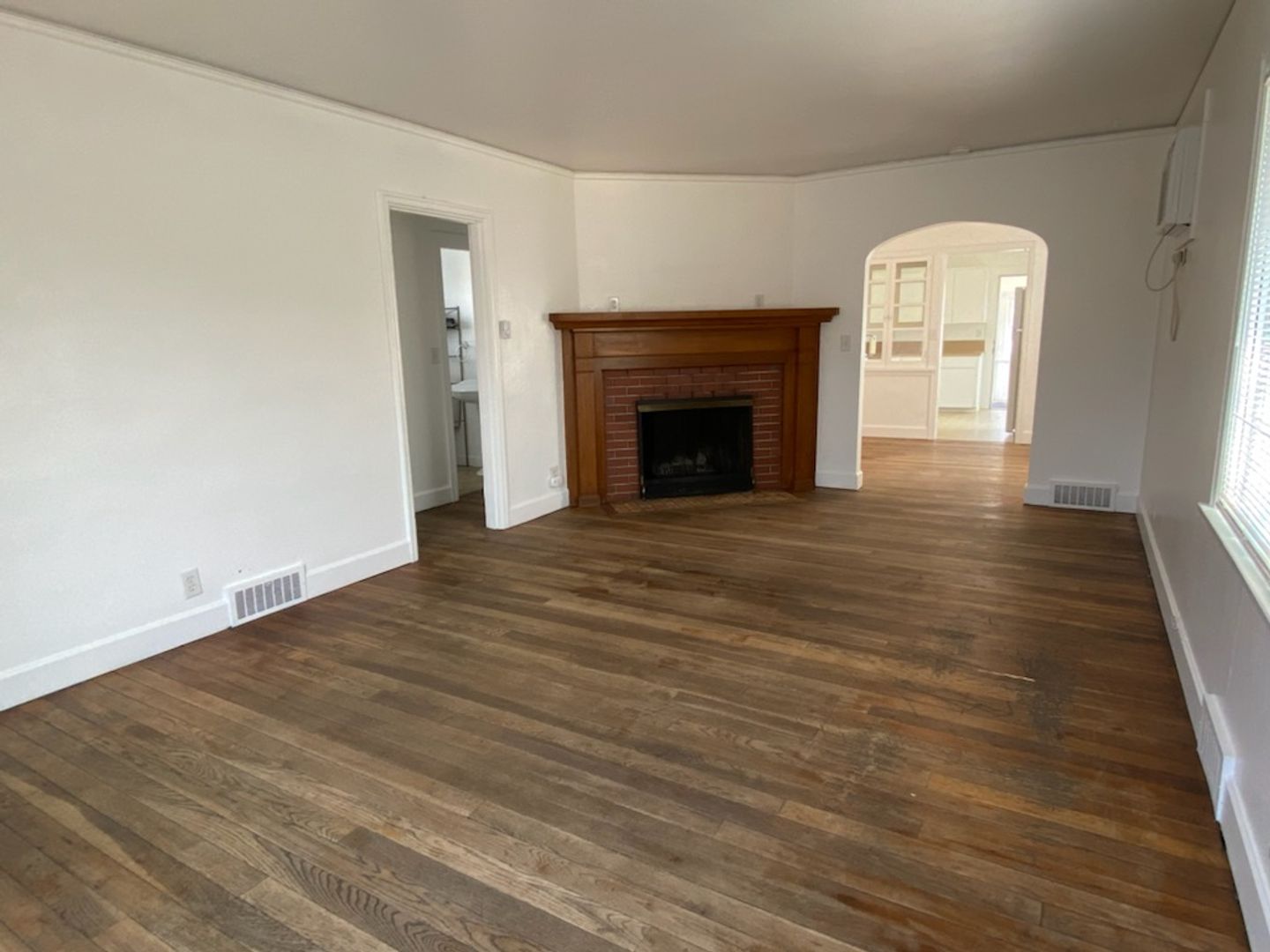 This cute & cozy home offers three bedrooms, one bath, open kitchen and large living room area with fireplace! Parking is off street, in the back of the house. Fully fenced front yard!